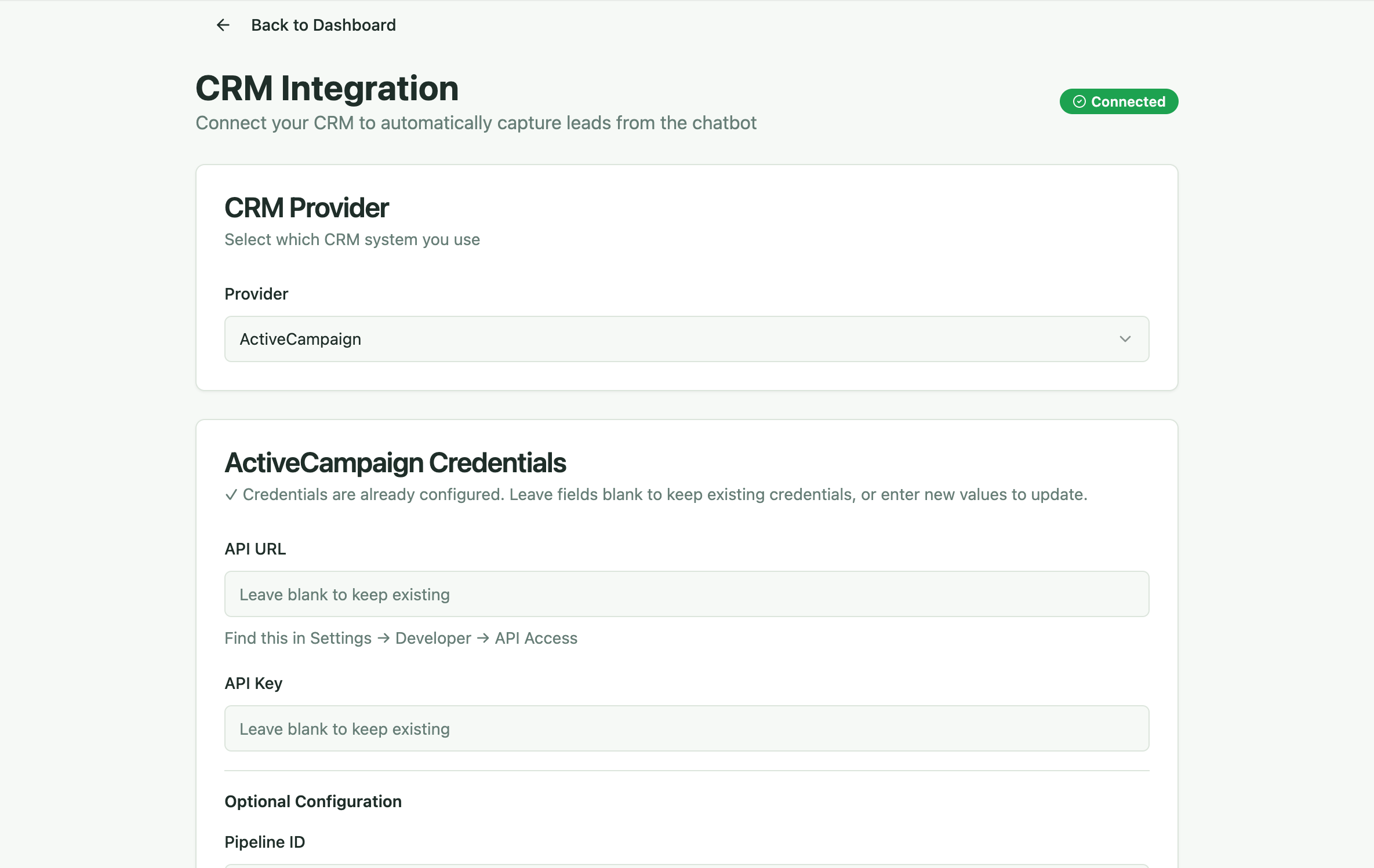 Every inquiry required manual data entry into ActiveCampaign, slowing down lead response time